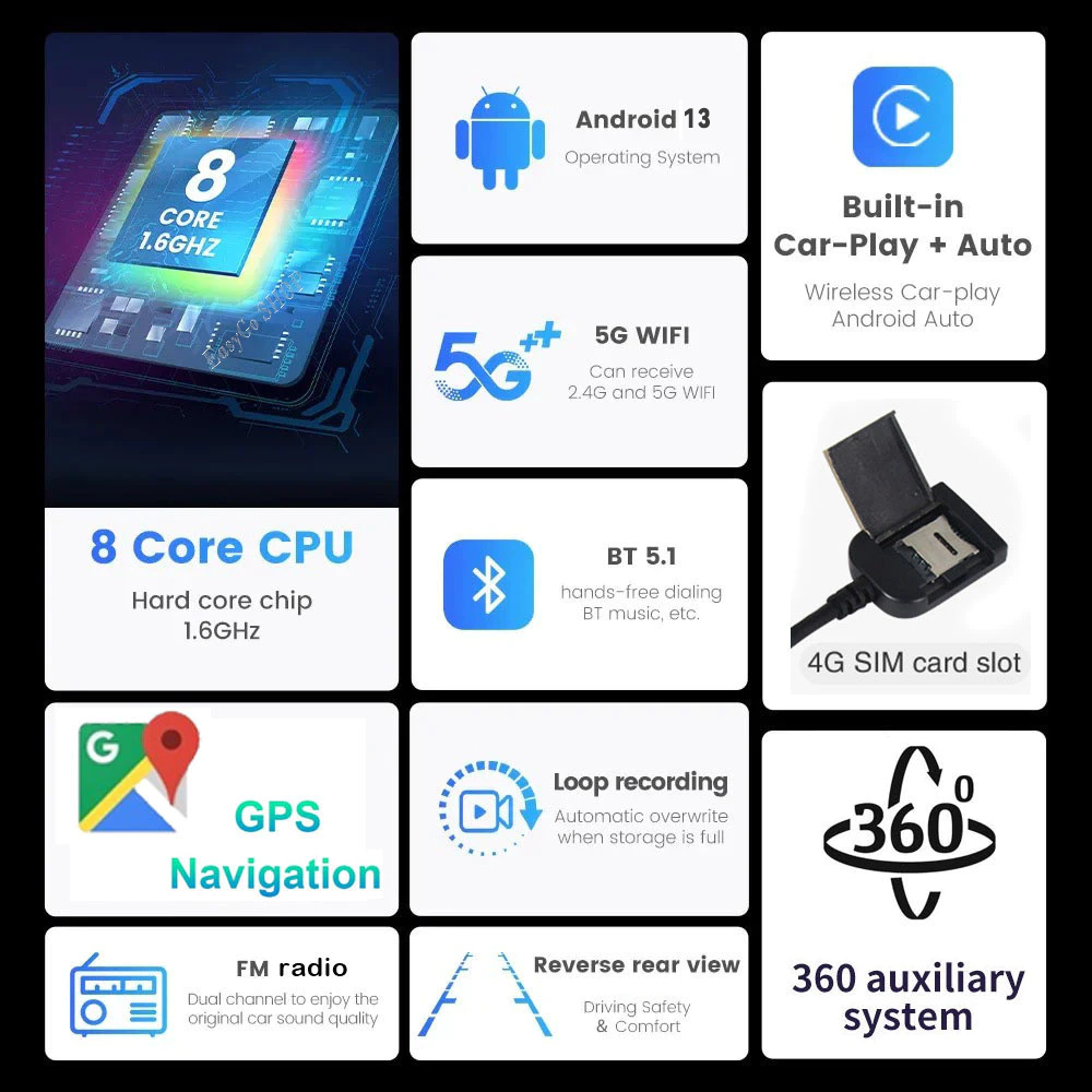[Support Kamera 360+SIM Card ] LALAHOO 8G+128G Android 13 Double Din Head Unit 7/9/10 Inch IPS Screen Car Navigasi Stere