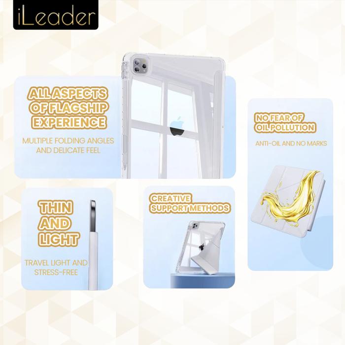 ILEADER IPAD CASE Y-STAND UNTUK UPGRADE CASING IPAD AIR1-7 CASE FOR IPAD GEN 5-11TH IPAD PRO(2018-2022)/PRO11"13"(2024) - BLACK, PRO 11"(2018-2022)