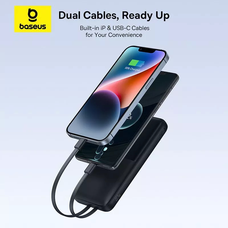 Baseus Powerbank Lipow 10000Mah 20000Mah 22.5W Digital Display Fast Charging Built-In Cable Type-C & Iphone