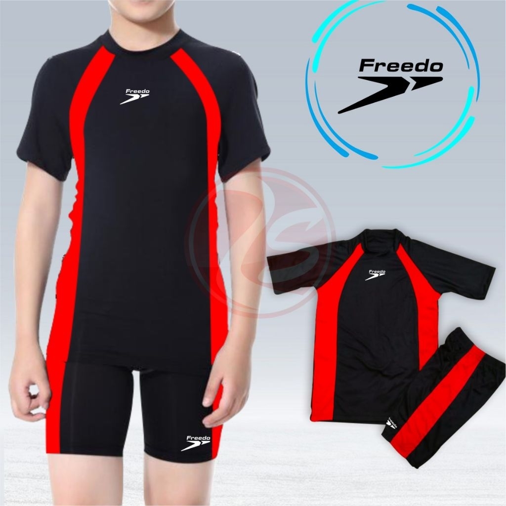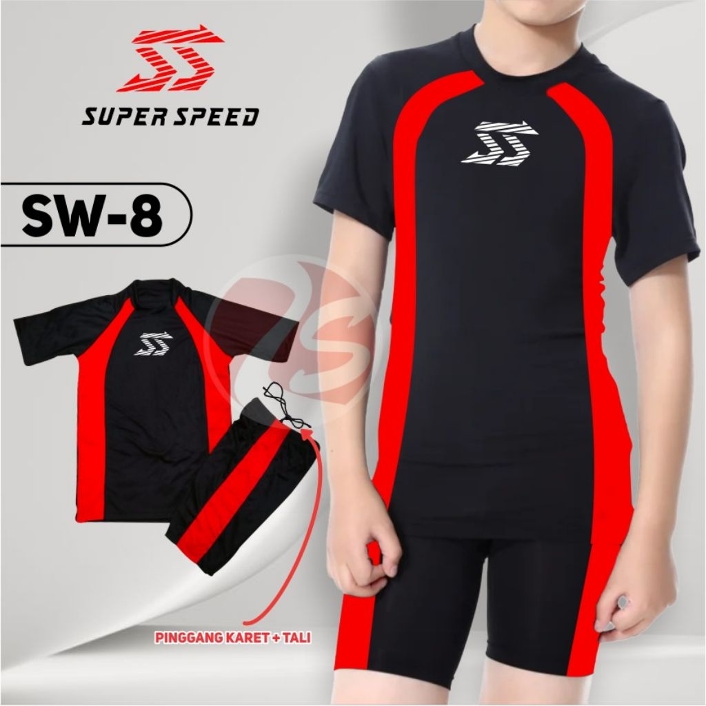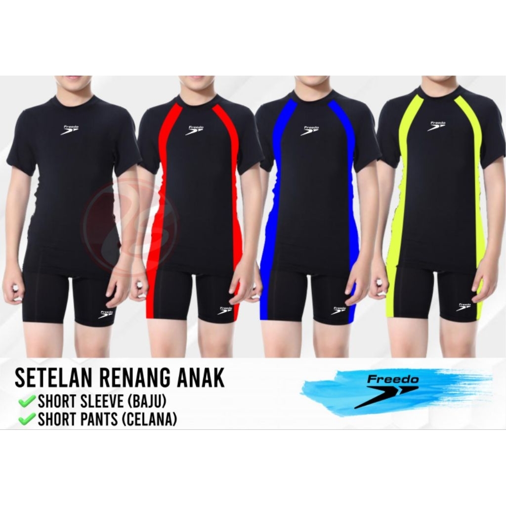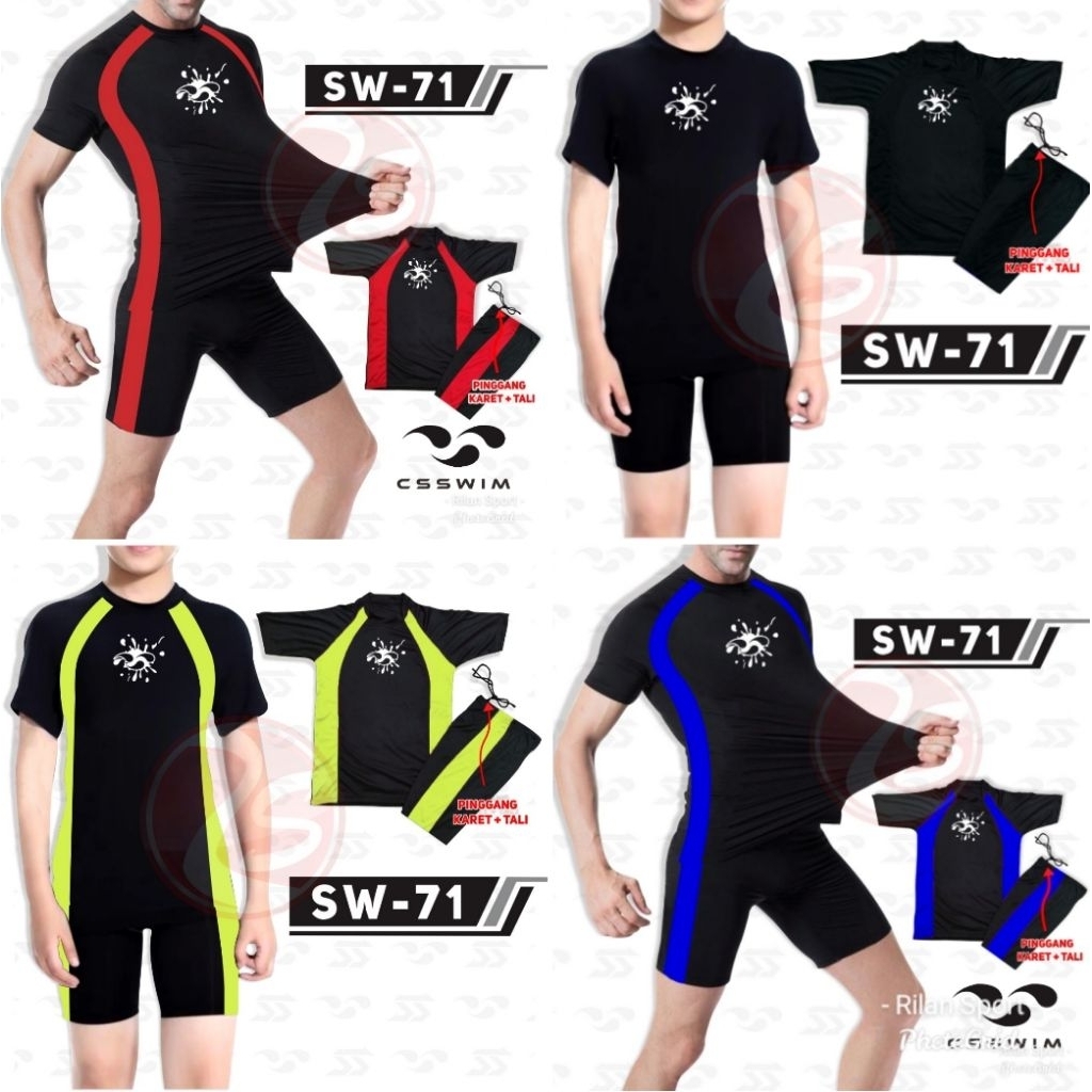 Setelan renang anak dan dewasa baju celana renang hitam lis merah biru stabilo csswim swiming sport
