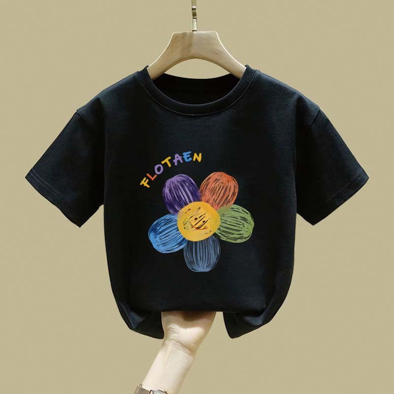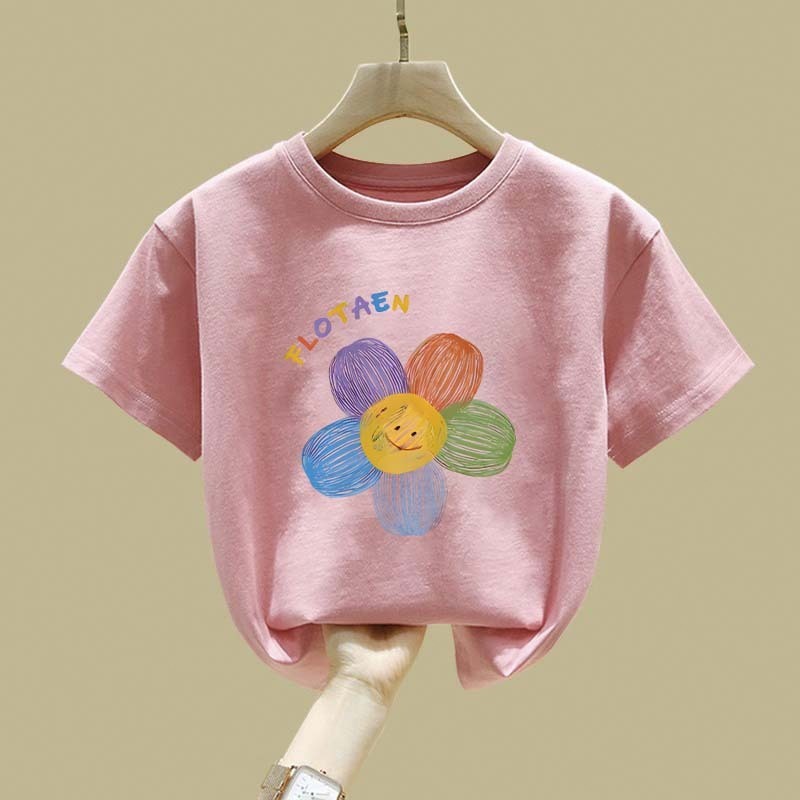 Jiojio Berwarna Merah Muda Motif Bunga Warna-Warni Sederhana Gaya Korea Pakaian Anak Baju Anak Perempuan Baju Anak Laki