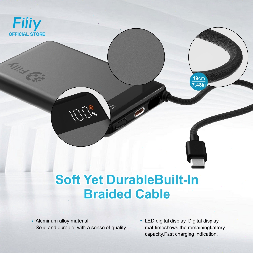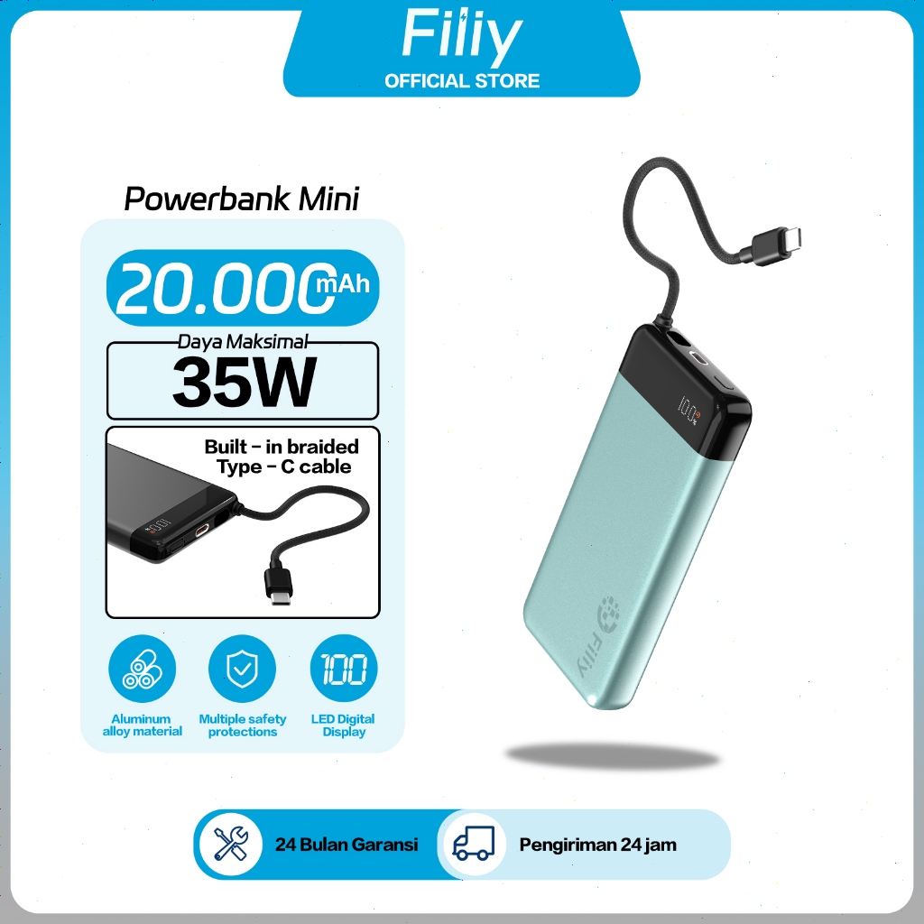 Filiy Colorful Power Bank Slim 35W 20000Mah Fast Charging Kabel Type C Built-In Pd Qc 3.0