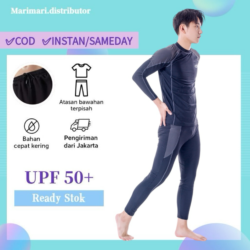 91008 -01 Baju renang antiuv / satu set / celana lengan panjang polos dewasa cowok pria
