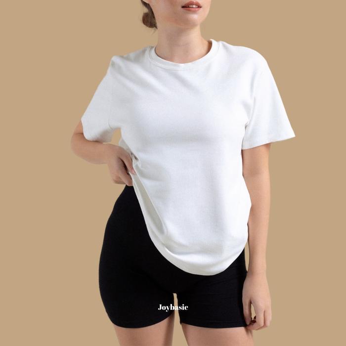 JOYBASIC BASIC T0P PREMIUM COTTON KAOS LOS SUPER NYAMAN CROP ATASAN - STANDARD - ALL SIZE, CREAM