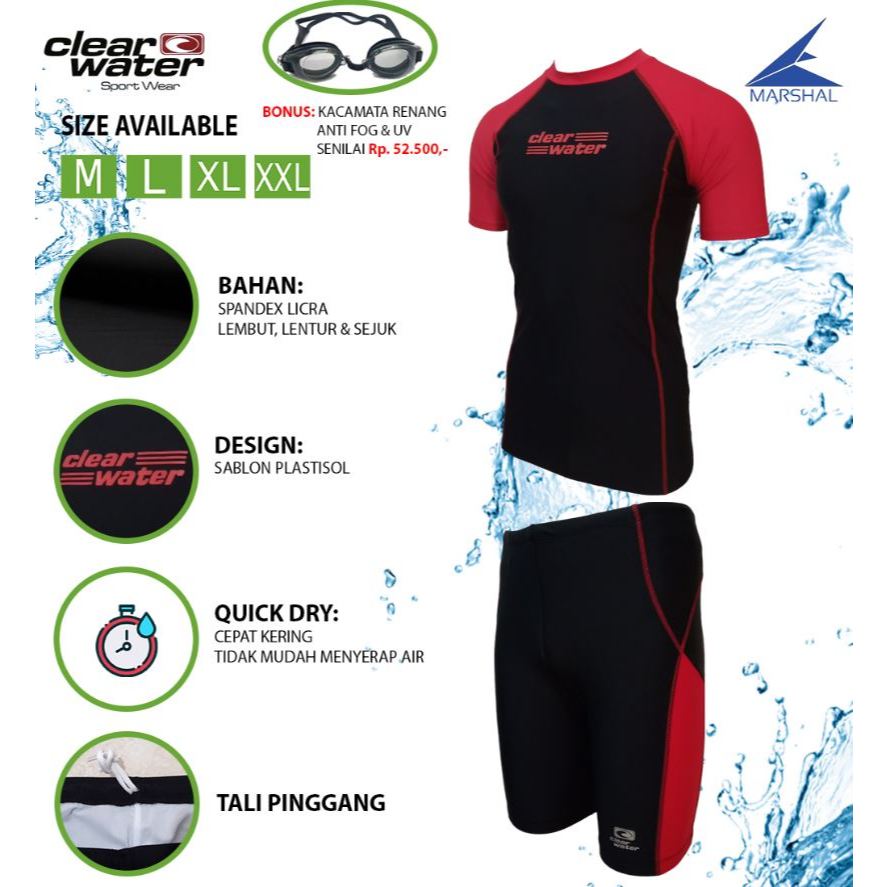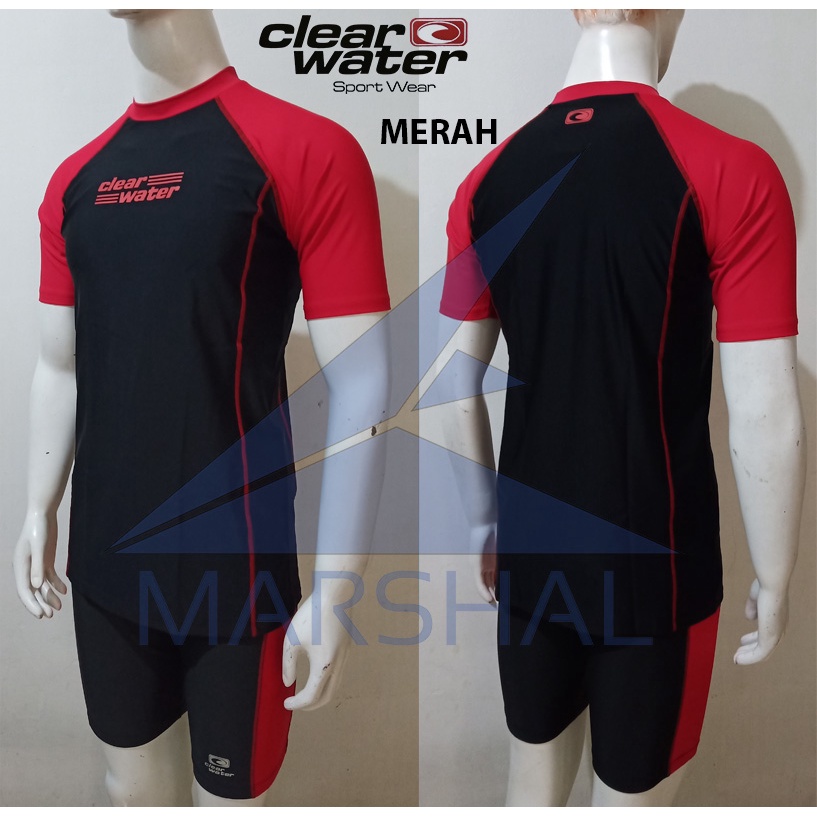 Clear Water Baju Renang Rash guard Set Setelan Pria Laki Laki Baju Lengan Pendek Celana Pendek Warna Cepat Kering Rashgu
