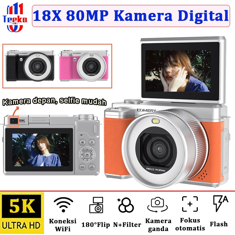 TEEKA X7 80MP 5K Selfie Kamera Digital Wifi Retro Kamera Video 5K Zoom Digital 18x dengan Koneksi WIFI Dukungan Selfie H