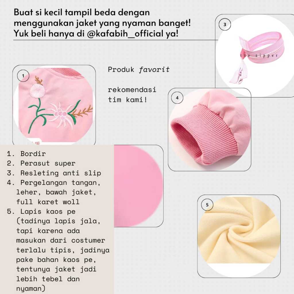 Kafabih_Official Jaket Anak Perempuan Bomber Bordir Bunga Warna Pink Biru Umur 1-12 Tahun