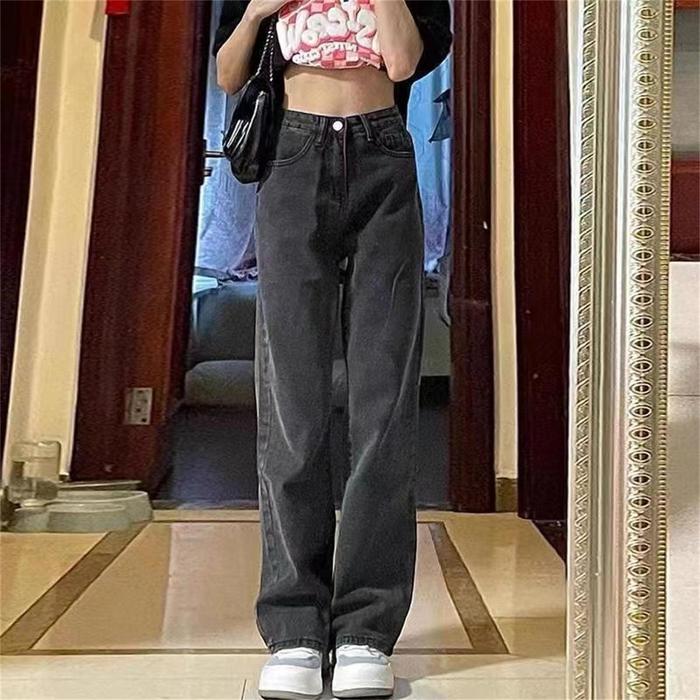 LULU-JEANS NEW KOREAN STYLE HIGH WAIST LOOSE MURAH CELANA JEANS PANJANG WANITA - PREMIUM BIRU RETRO8563, S