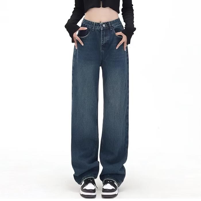 CELANA HIGHWAIST LOOSE JEANS WANITA | BAGGY JEANS LOOSE HIGHWAIST - BLUE RETRO, 27