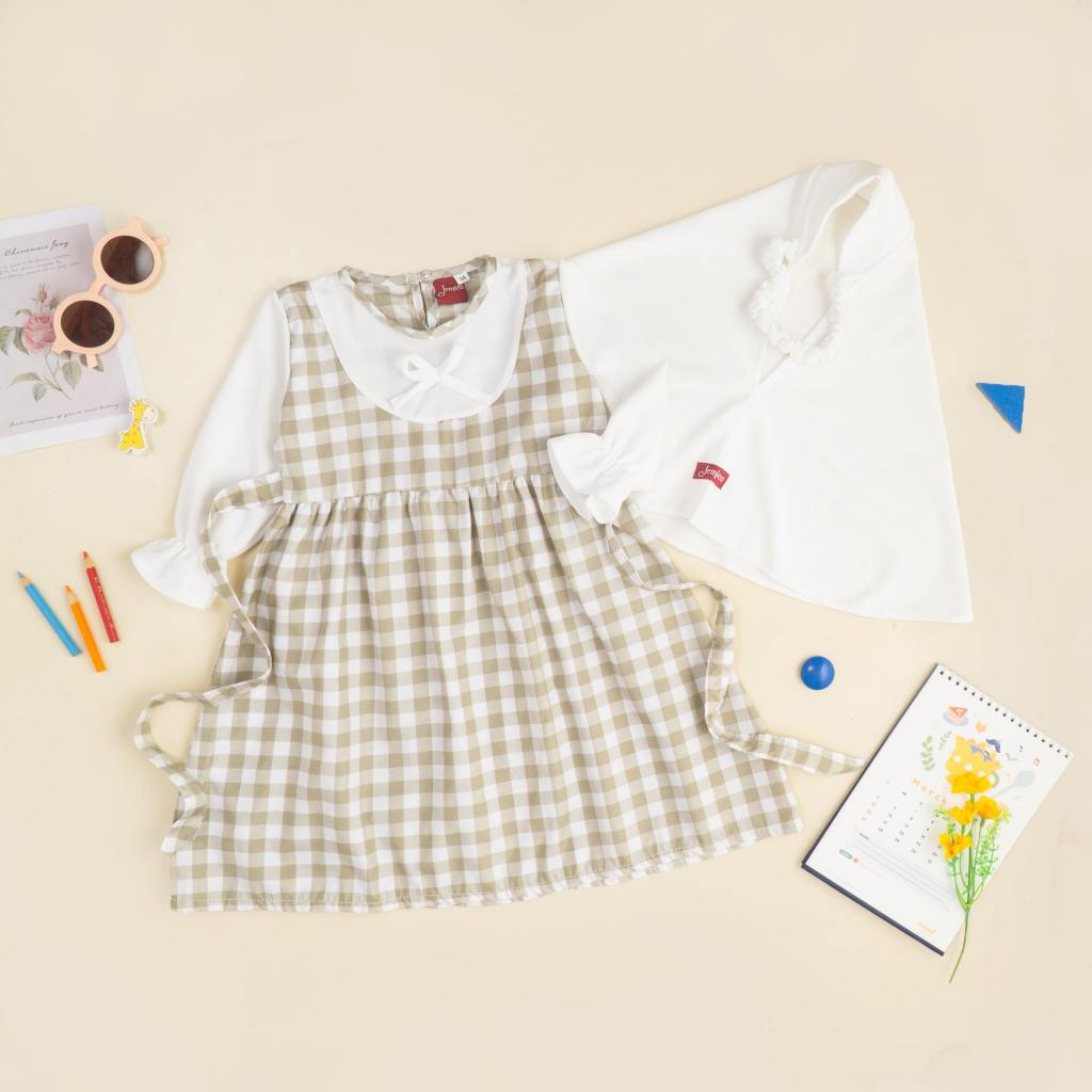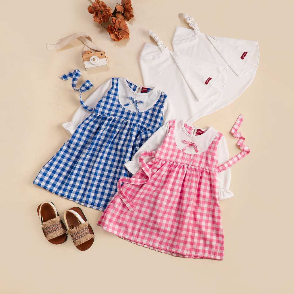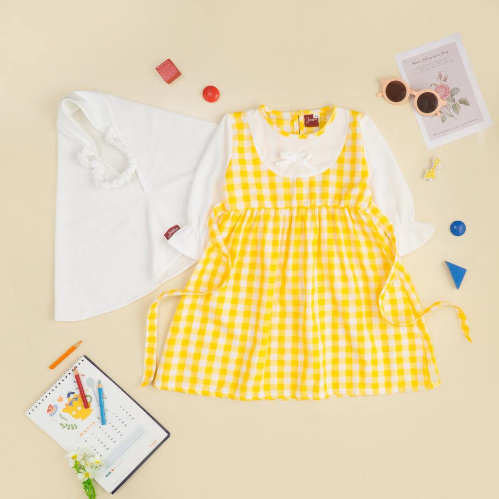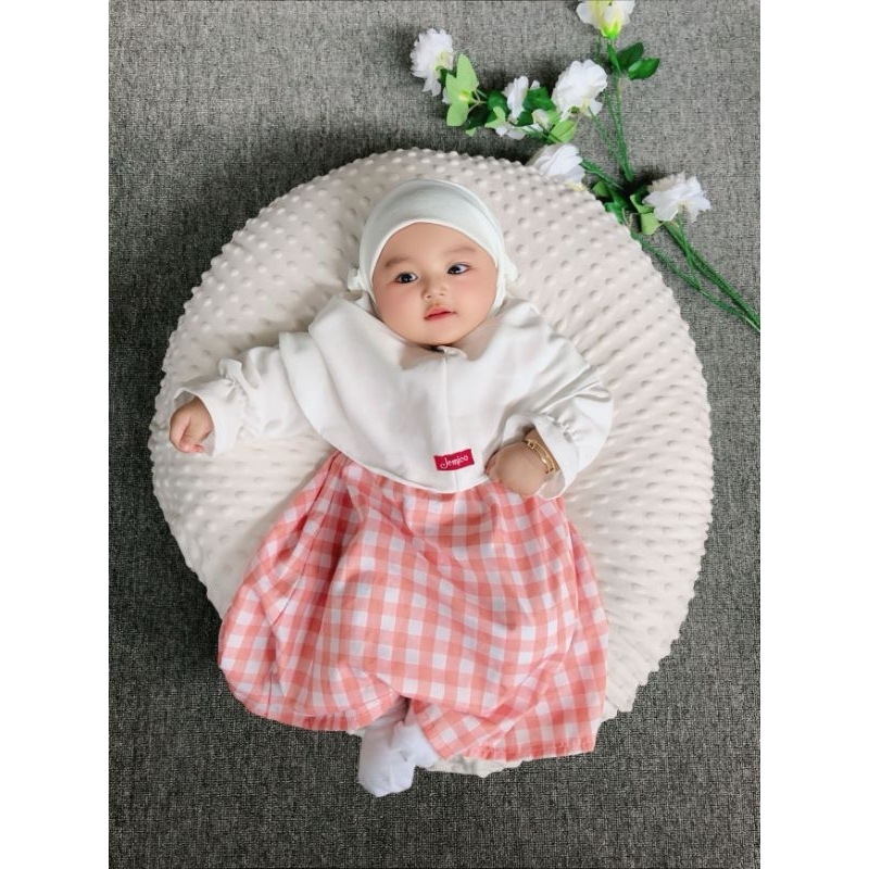 Jemico | Gamis Anak Bayi Perempuan Usia 6 - 24 Bulan Dan 1 Tahun - 2 Tahun Full Kotak Besar Lengan Putih
