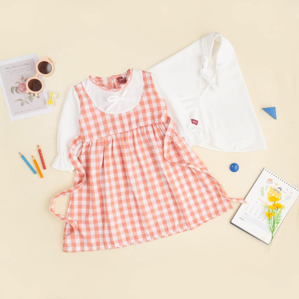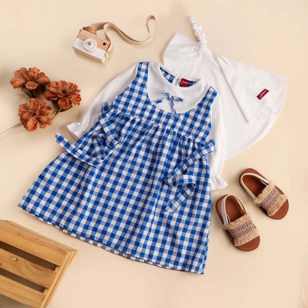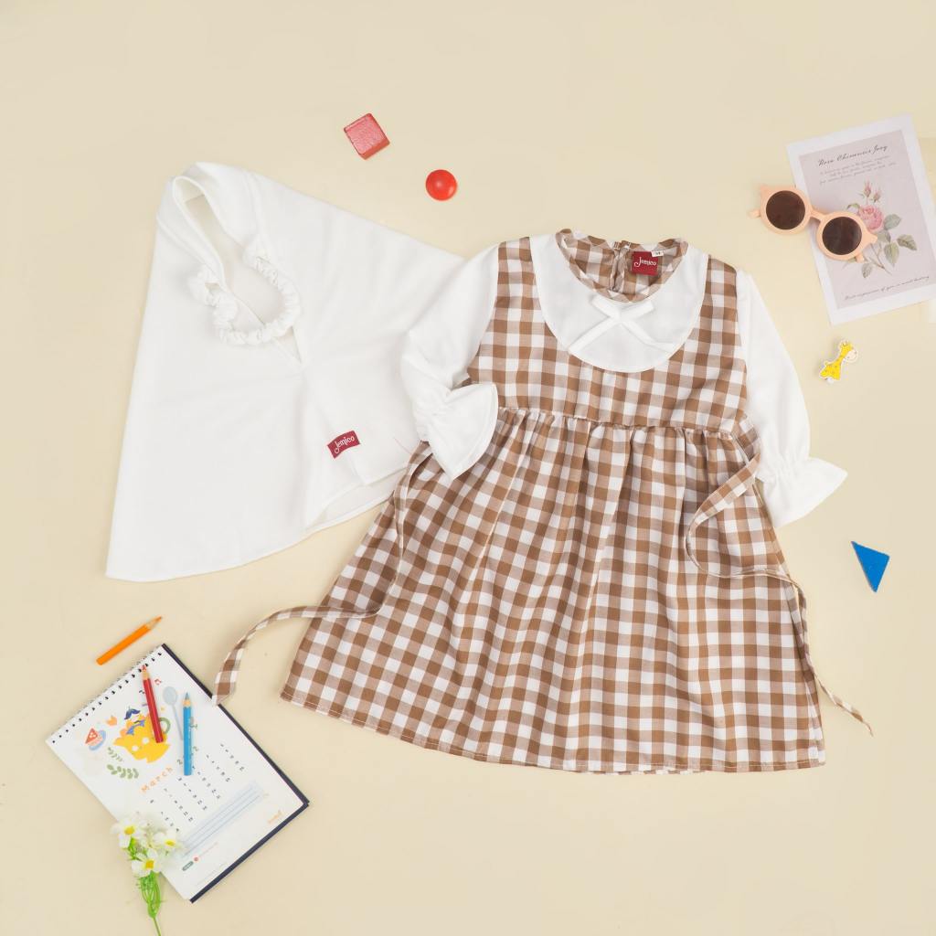 Jemico | Gamis Anak Bayi Perempuan Usia 6 - 24 Bulan Dan 1 Tahun - 2 Tahun Full Kotak Besar Lengan Putih