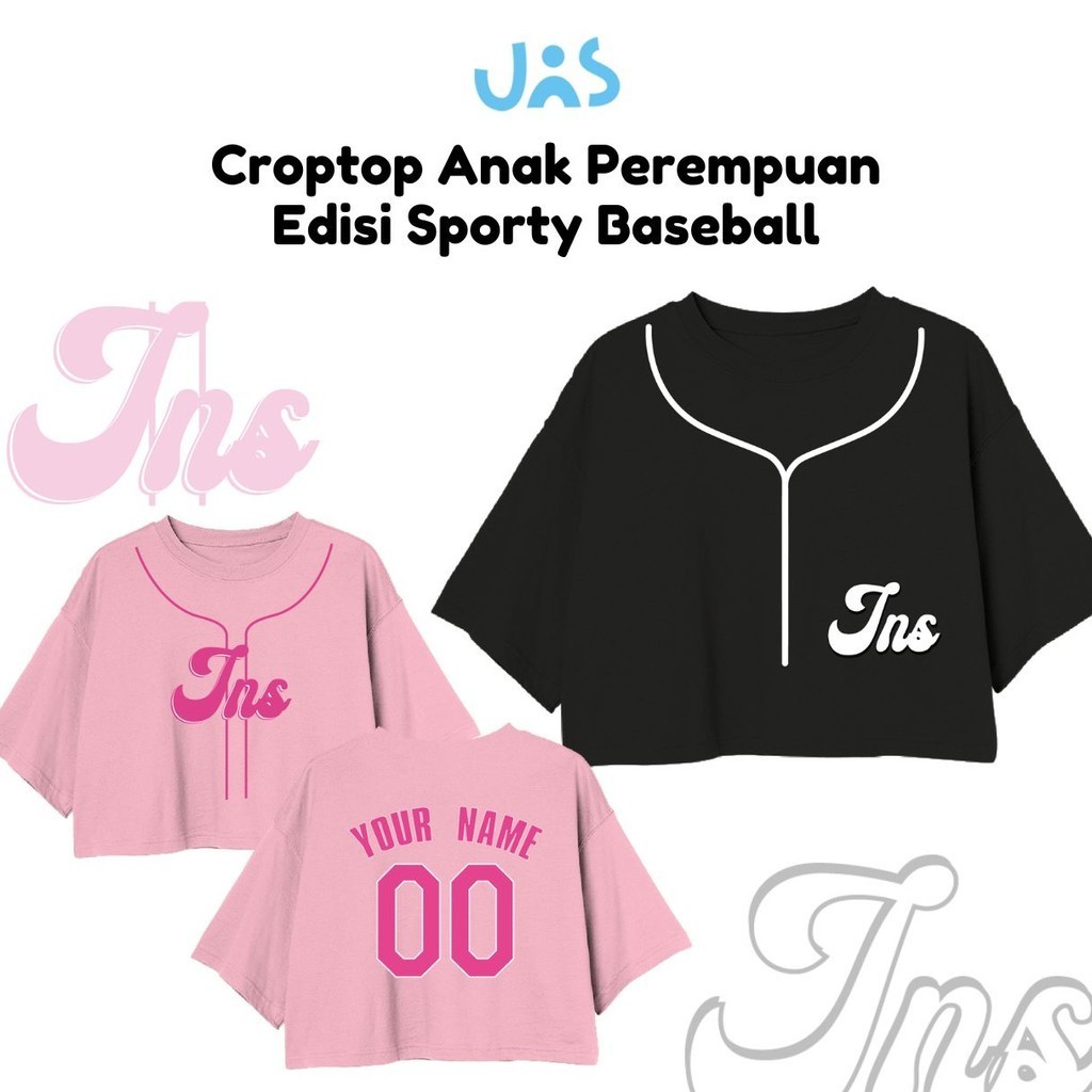 Jns Croptop Anak Perempuan Bisa Tambah Nama Sporty Series Baseball Jns Bahan Katun Combed 30S