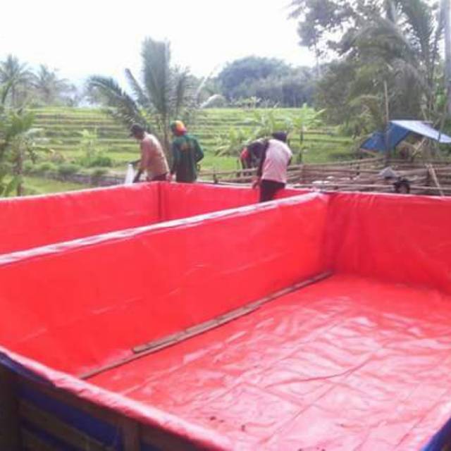Kolam terpal kotak ukuran P.4m x L3m x T1m. Bahan A12 Merk sakura