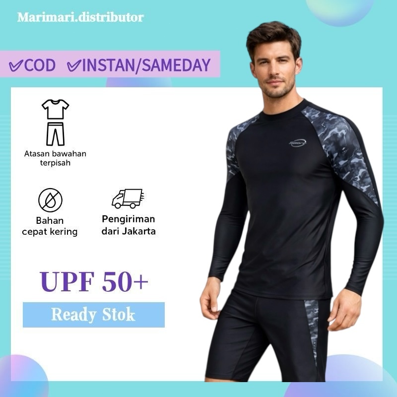 91024 Baju renang antiuv pakaian lengan panjang celana pendek dewasa cowok / pria / celana renang