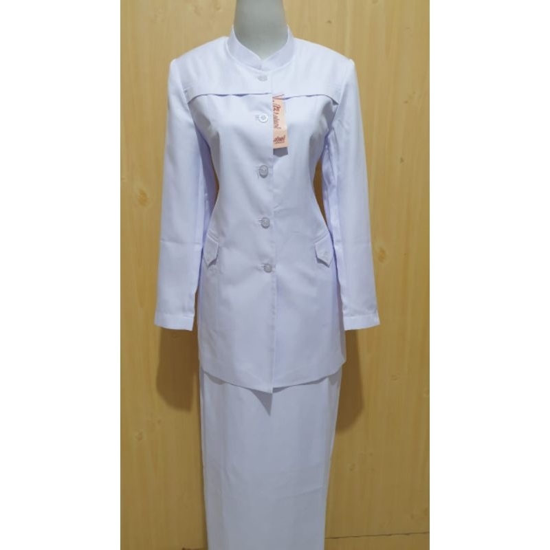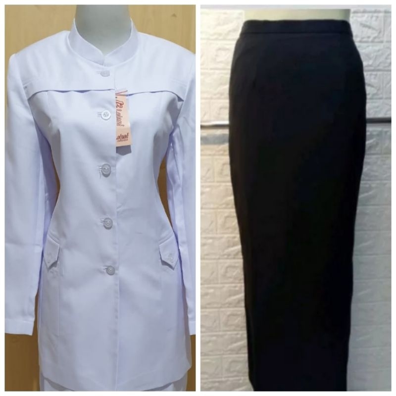 Seragam ASN wanita/ Seragam NAKES/ Baju Dinas PNS putih hitam/ Seragam perawat/ Baju Dinas PDL ASN PNS Putih - Putih/ Se