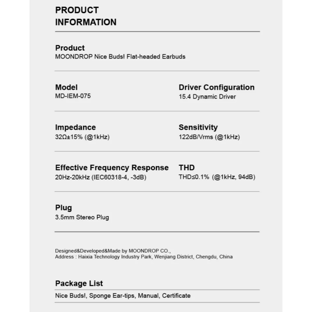 Moondrop Nice Buds 15.4 Large Dynamic Driver Earbud Earphone