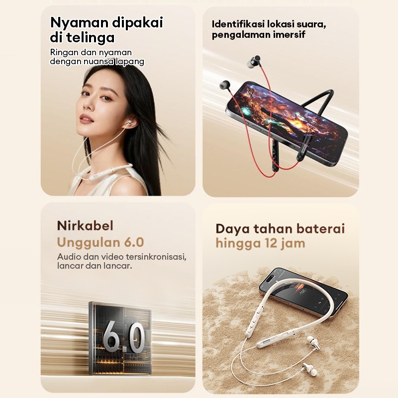 Lenovo Thinkplus Y111 Headset Bluetooth Sport IPX4 Waterproof ACS Panoramic Sound Effects Neckband Earphone Bluetooth V6.0