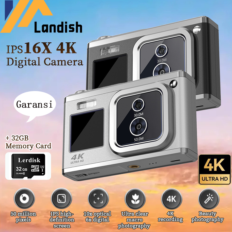 Baru NEXUS R10 4K Digital Camera Dual Screen 50MP+30MP 16X Zoom High-Definition Selfie Beauty Camera +32GB Kartu Memori