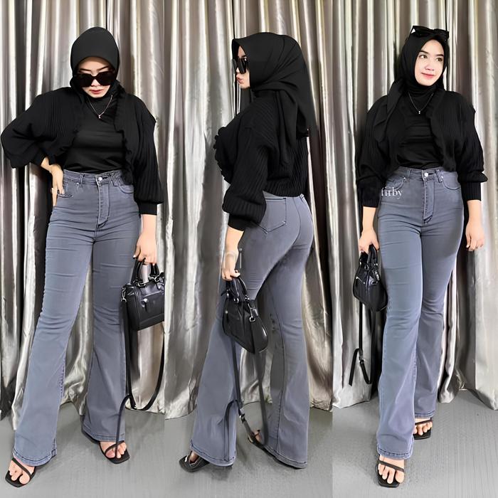 CELANA HIGHWAIST CUTBRAY JEANS WANITA JUMBO 35-42 BIG SIZE MUAT BB 100KG HITAM - JEANS WANITA - CEWEK, PANJANG KARET - GREE, 27