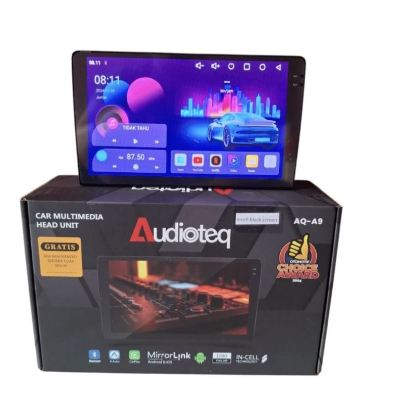 Head unit android 10 inch audioteq AQ-A9 ram 2+32 incell black screen support android auto carplay