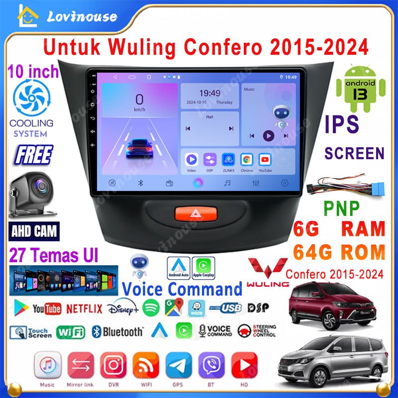 【Untuk Wuling Confero 2015-2024】6G+64G Android 13 Head Unit Dengan Frame/PNP Soket 10 Inch IPS yy