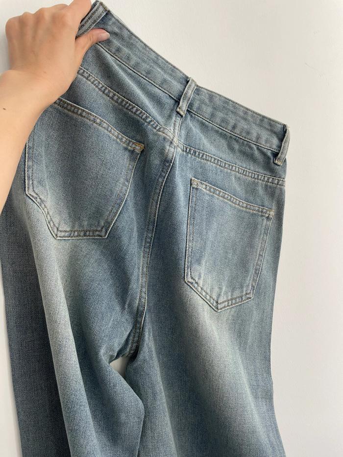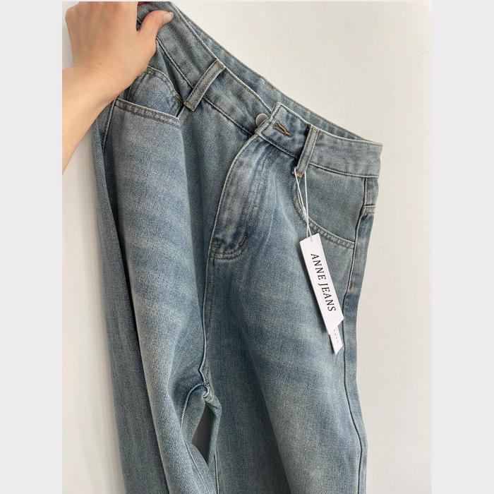 【LUCK WANITA】RETRO LURUS KOREA CELANA JEANS WANITA HIGHWAIST - BIRU, S