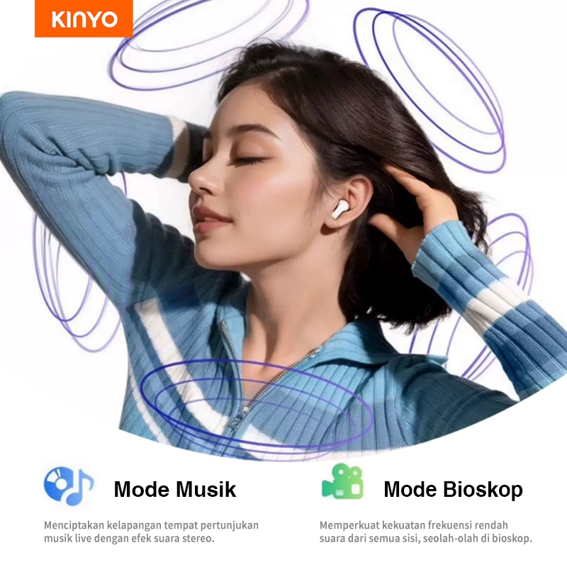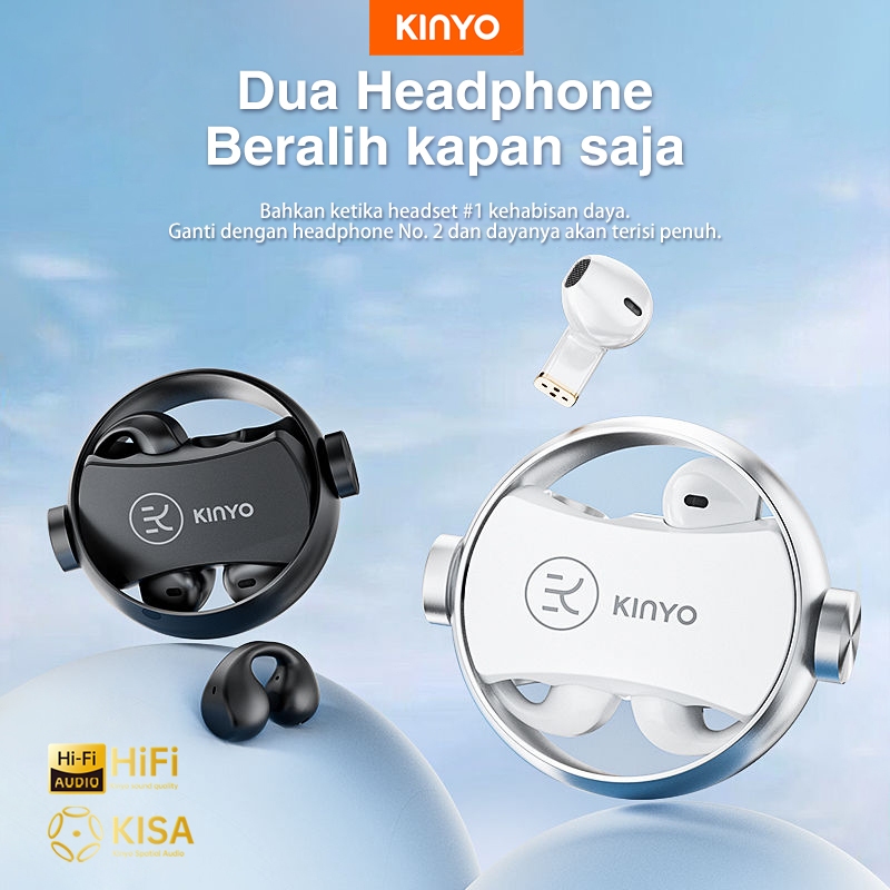 Kinyo A20 Tws Four Headset Bluetooth 5.4 Headset Wireless In Ear Ai Hd Noise Reduction Call Henset Ear Clip 4G Ringan Ny