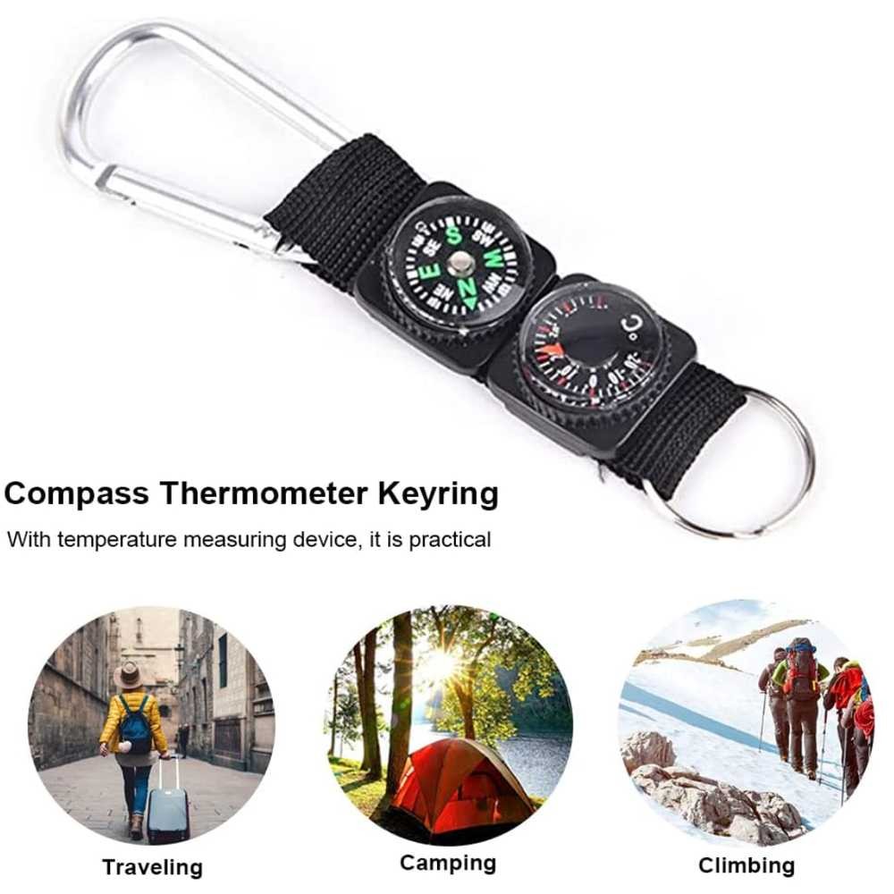 Mayitr Gantungan Kunci 3 in 1 Kompas Termometer Carabiner Key Ring - SF6244