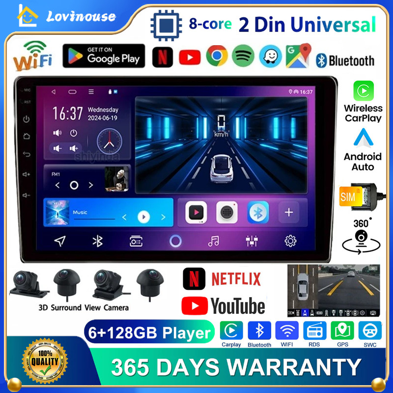 【Support Kamera 360+SIM Card】8G+128G Android 13 Double Din 8-Core CPU Head Unit 7/9/10 Inch IPS Screen Car Navigasi Untu