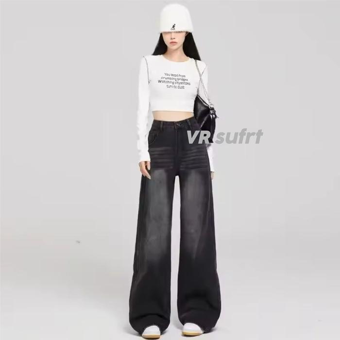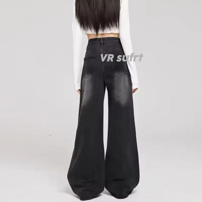UNISEX BAGGY JEANS WANITA CELANA JEANS WANITA - CELANA LOOSE JEANS WANITA - KOREANS JEANS WANITA - HITAM RETRO WISKER, XS