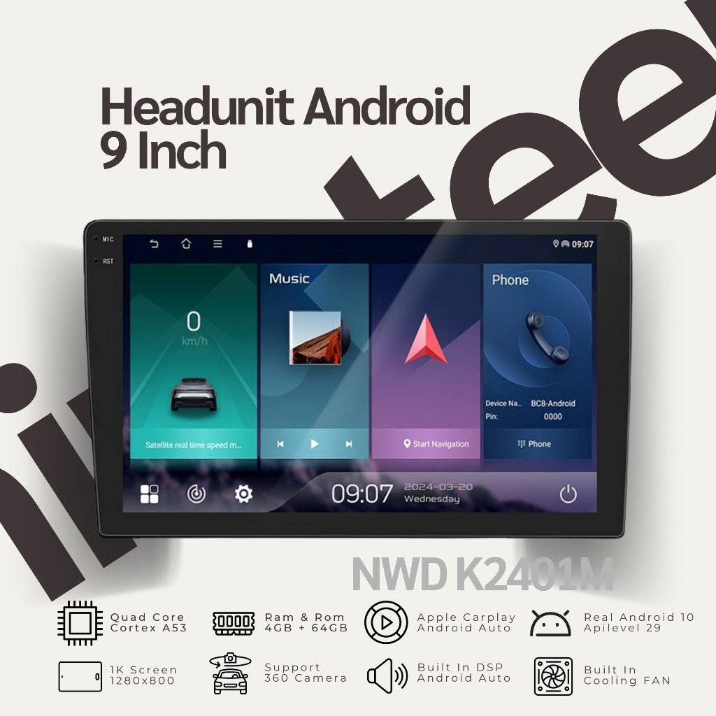 NWD K2401M Headunit Android Universal 9 Inch IPS QLED 1K RAM 4GB 64GB Pro DSP Apple Carplay