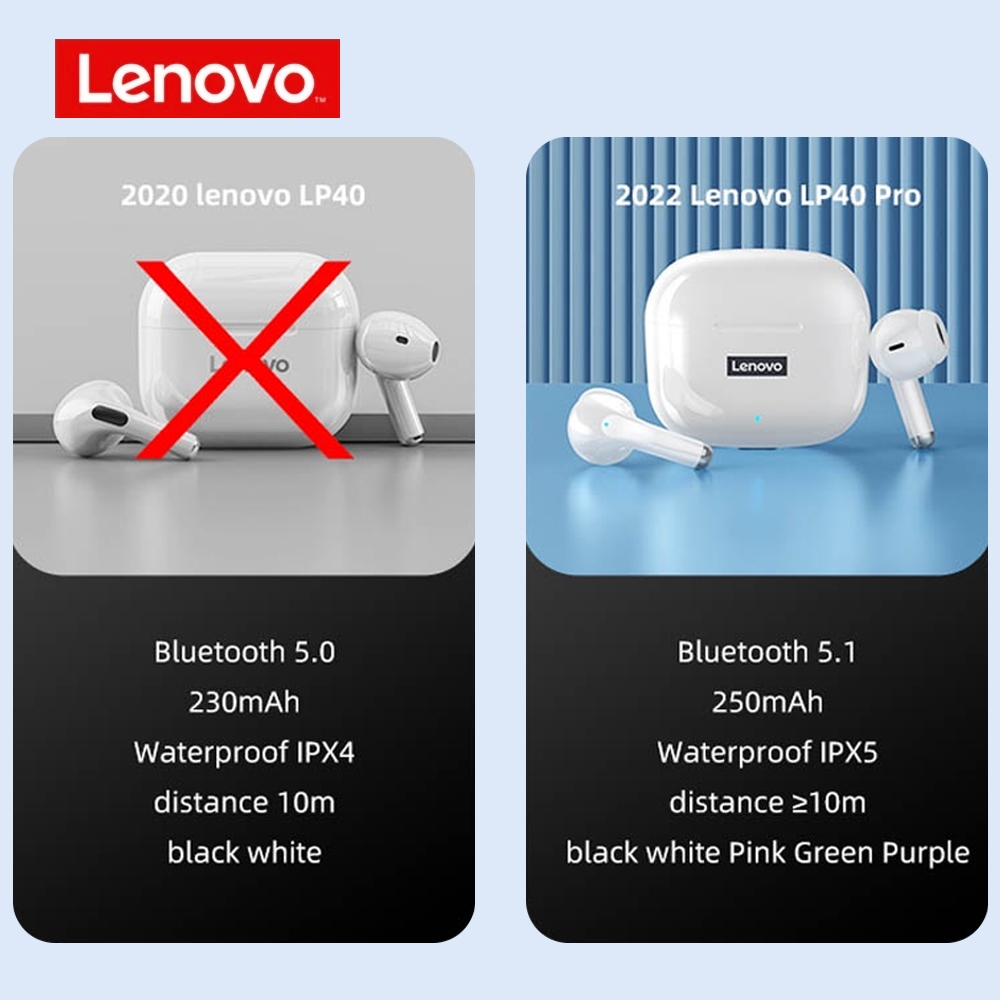 Lenovo Lp40 Pro Tws Bluetooth Earphone With Mic Mini Earbuds Noise Reduction Bluetooth Headphone For Ios Android