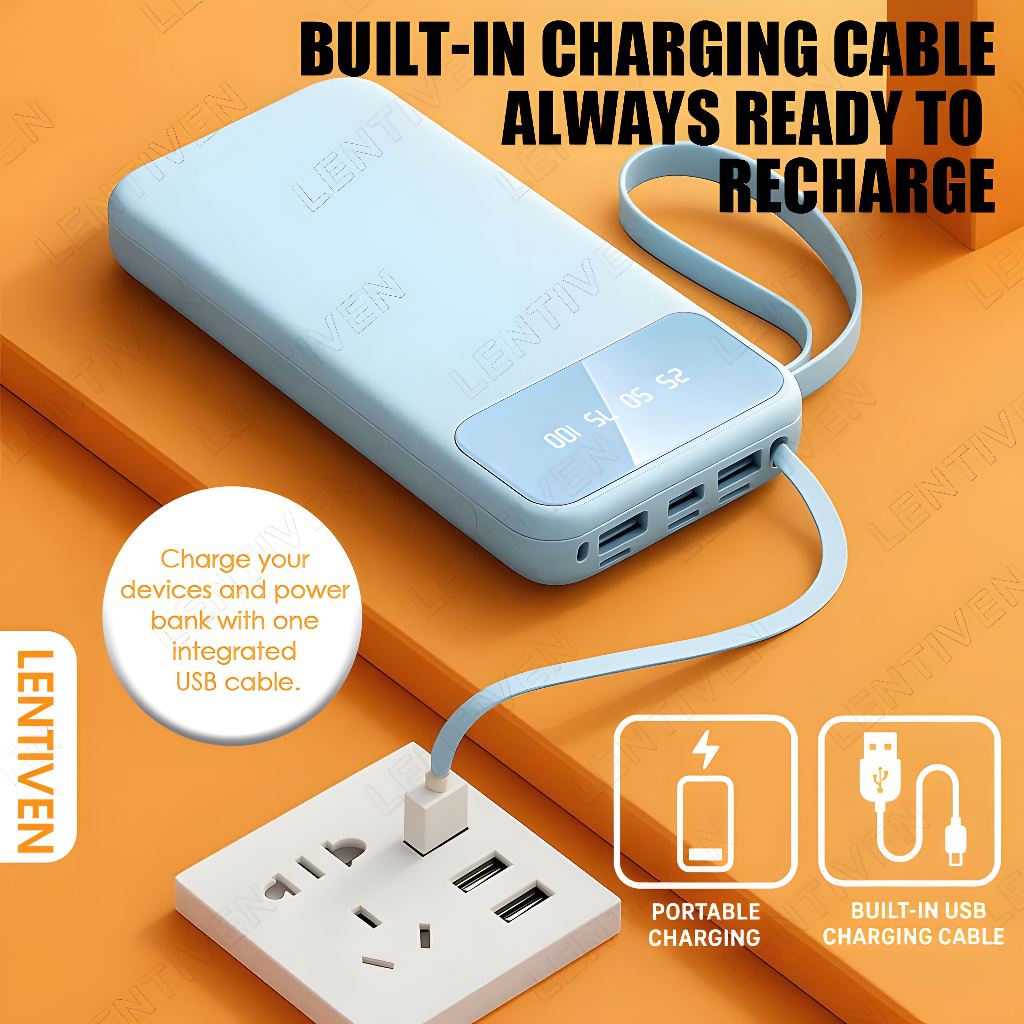 Lentiven 30000Mah Powerbank Mini Fast Charging 4 Kabel Lightning & Type C For Iphone/Android Bh356