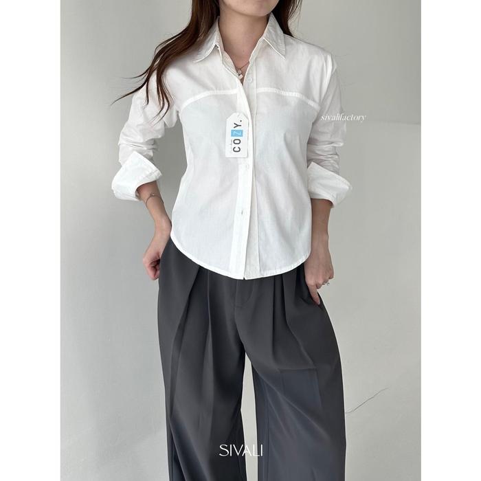 SIVALI HAVEN FITTED SHIRT - KEMEJA WANITA SLIM EFFECT LENGAN PANJANG CASUAL/KERJA - ATASAN WANITA KATUN KATUN BAJU OVERSIZE - BLACK, S