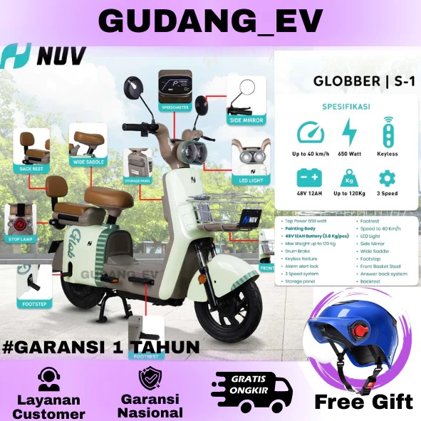 SEPEDA LISTRIK NUV S1 GLOBBER GARANSI RESMI 1 TAHUN
