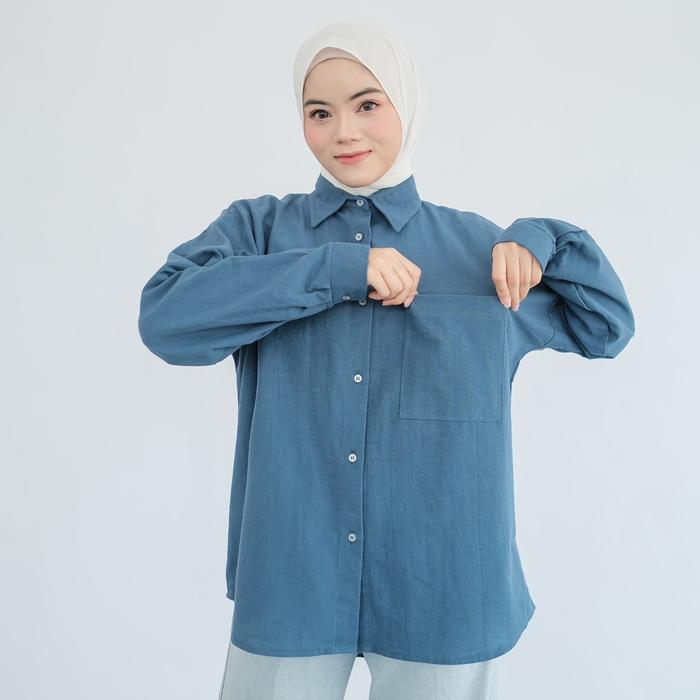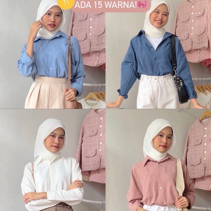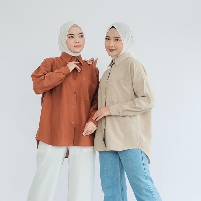 KEMEJA LINEN LOS OVERSIZE ATASAN CASUAL PANJANG WANITA FORMAL - BEIGE
