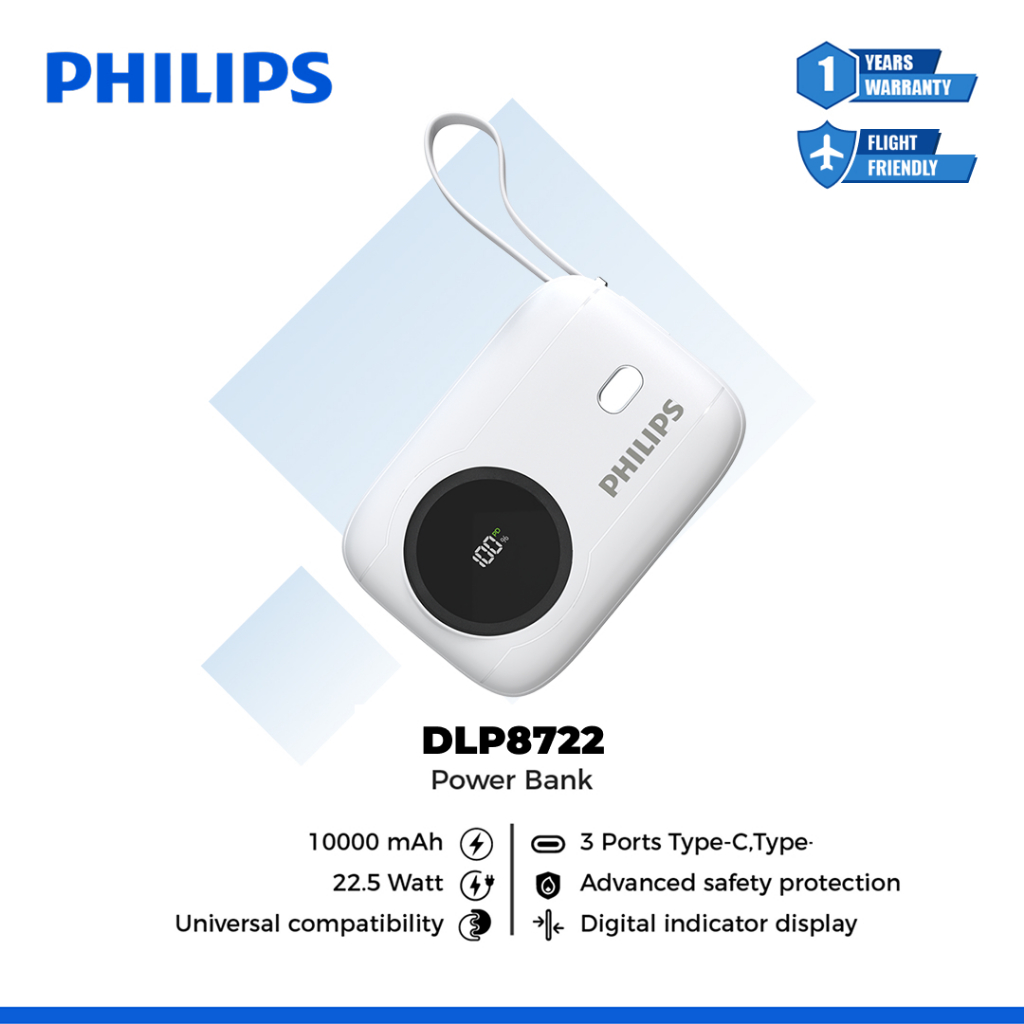 Philips Dlp8722 Power Bank 3 Ports 10000 Mah Fast Charging