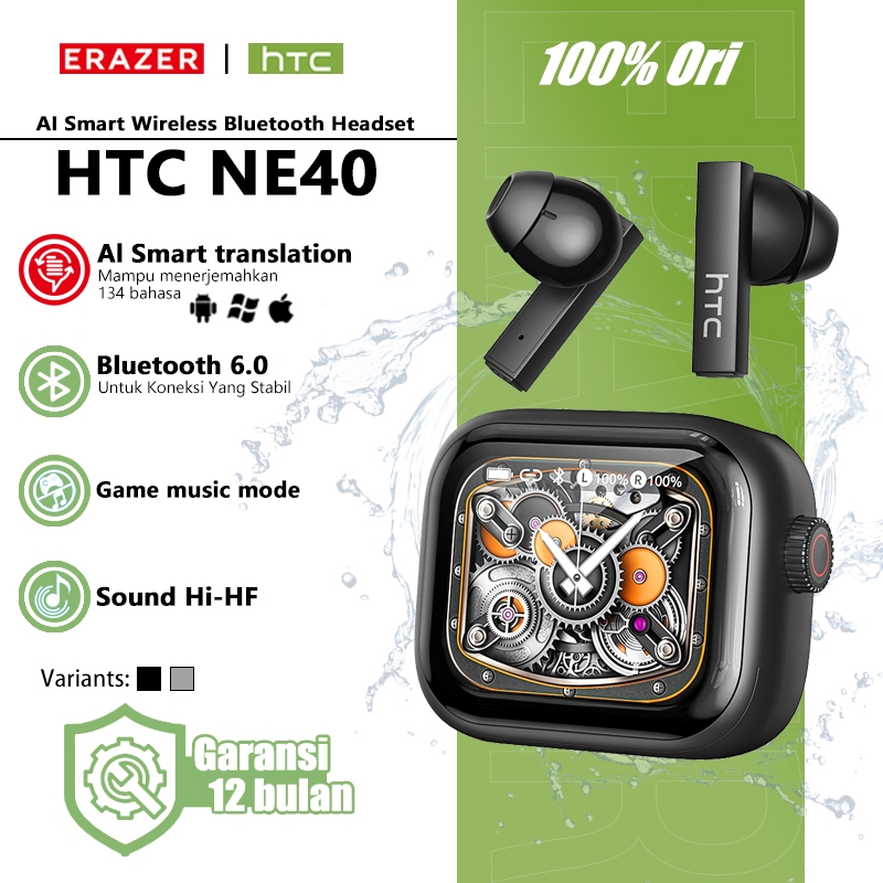 ERAZER & HTC NE40 Headset In Ear Mini Wireless Bluetooth 6.0 AI Translation Layar Display Noise Cancelling