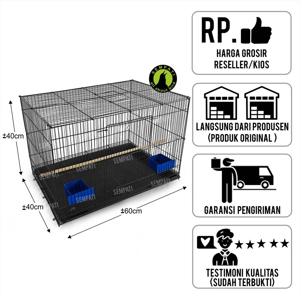 SEMPATI GROSIR Sangkar Kandang Umbaran Kucing Size Large L 60x40cm Ekonomis Isi 10 Pcs Fullset Free 2 Cepuk Plus Tatakan