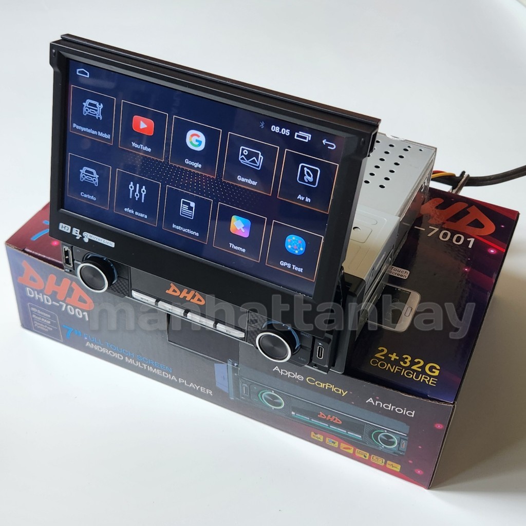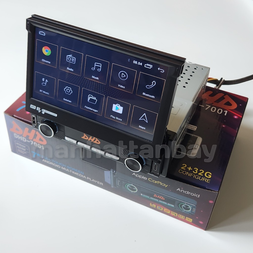 Headunit Android DHD Bodi Single Din Indash Layar Lipat 7 Inch