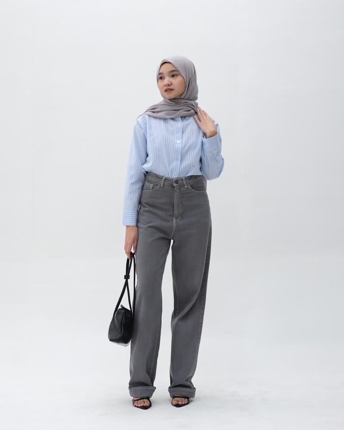 KEMEJA PANJANG SALUR WANITA | HANNI STRIPED SHIRT | HULM - LIGHT BLUE 1, M
