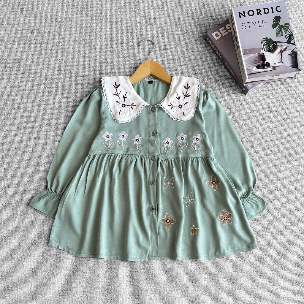 Leona Blouse Atasan Anak Perempuan Lengan Panjang Dengan Bordir Bunga Dan Kerah Motif Baju Anak Stylish Casual Elegan Ou