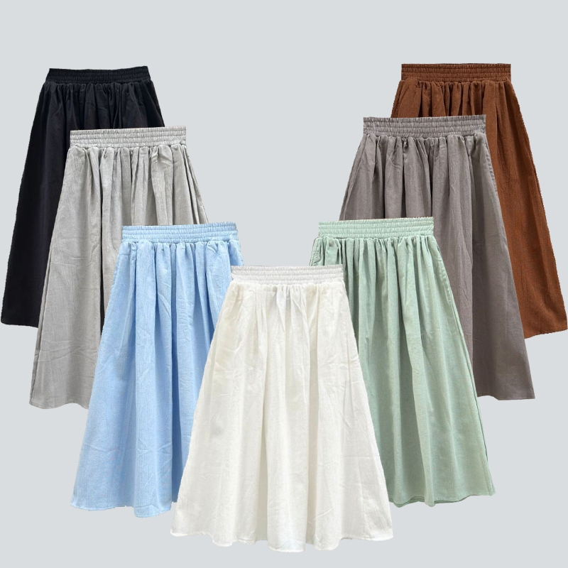Lisyagirl - Rok Anak Perempuan Hingga Dewasa / Rok Anak Cewe Umur 4- 15 + / Rok Midi Bahan Katun Rami