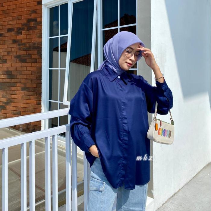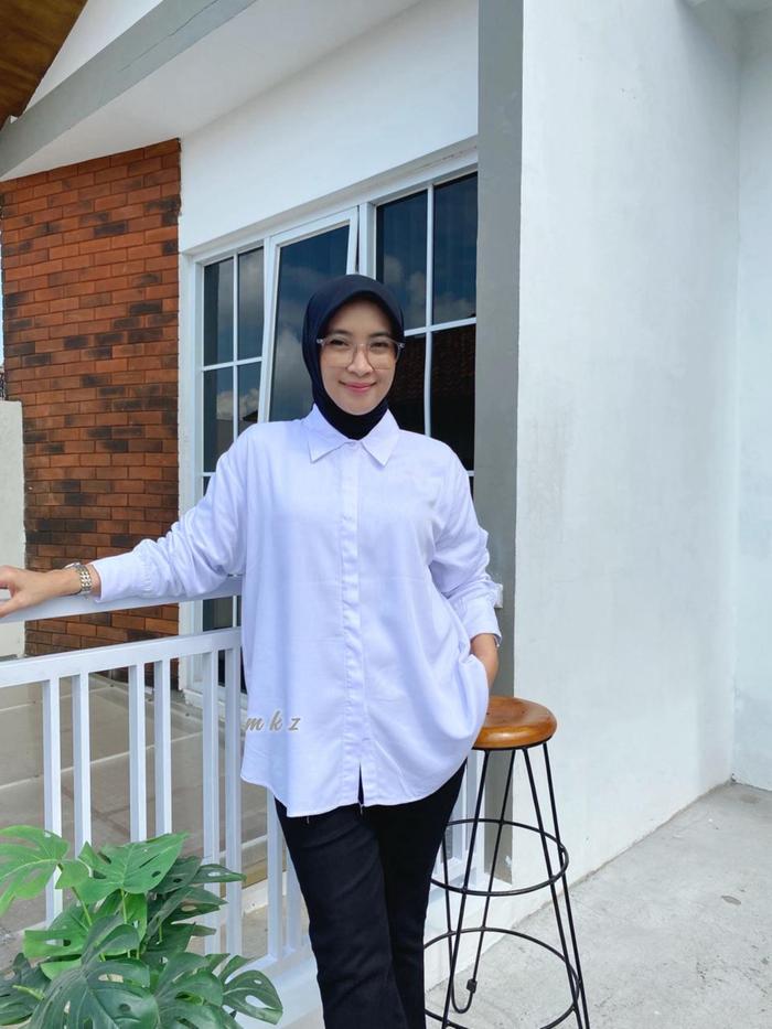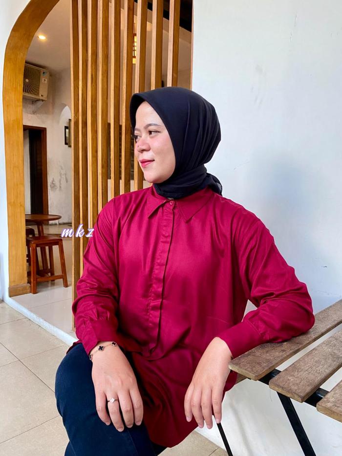 MKZ LALUNA RAYON TWILL KEMEJA BLOUSE PAJANG WANITA LOS ATASAN PANJANG CASUAL - PUTIH BERSIH, XL