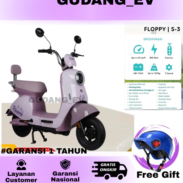 SEPEDA LISTRIK NUV S3 FLOPPY GARNSI RESMI 1 TAHUN ANTI AIR