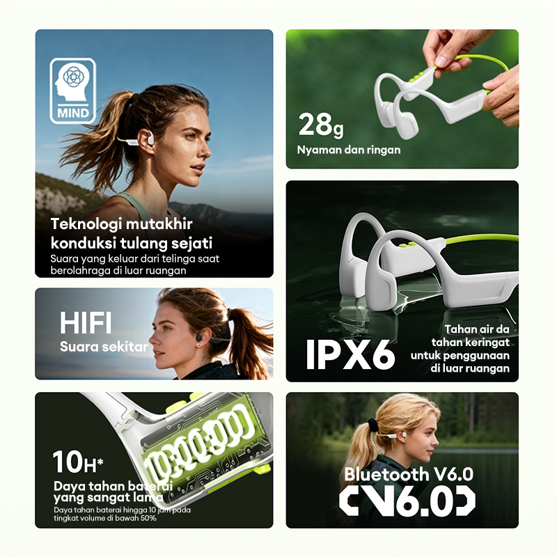 Lenovo Thinkplus S102 Bone Conduction Earphone Bluetooth IPX6 Waterproof Headset Olahraga Headphone Bluetooth V6.0