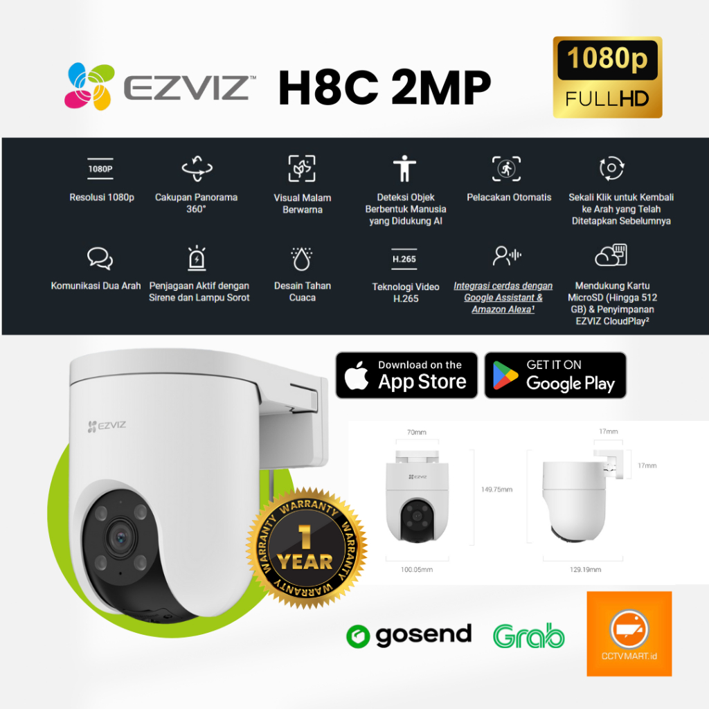 Ezviz H8c CCTV Outdoor 2MP CCTV Pan&Tilt Wifi IP Camera Auto Tracking 1080p Wifi