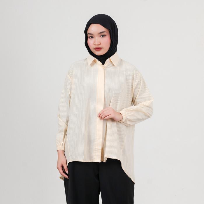 ELF STORE - KARA KEMEJA ATASAN SALUR STRIPE KATUN LD JUMBO WANITA MUSLIM PANJANG KEKINIAN BAJU OVERSIZE - SKYBLUE, XXL LD 126CM