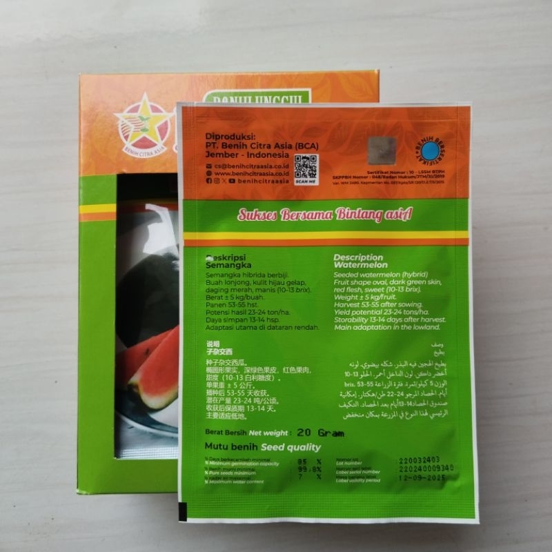 Benih Semangka Mardy F1 20 Gram - Bibit Semangka Inul ( Berbiji) - Cap Bintang Asia