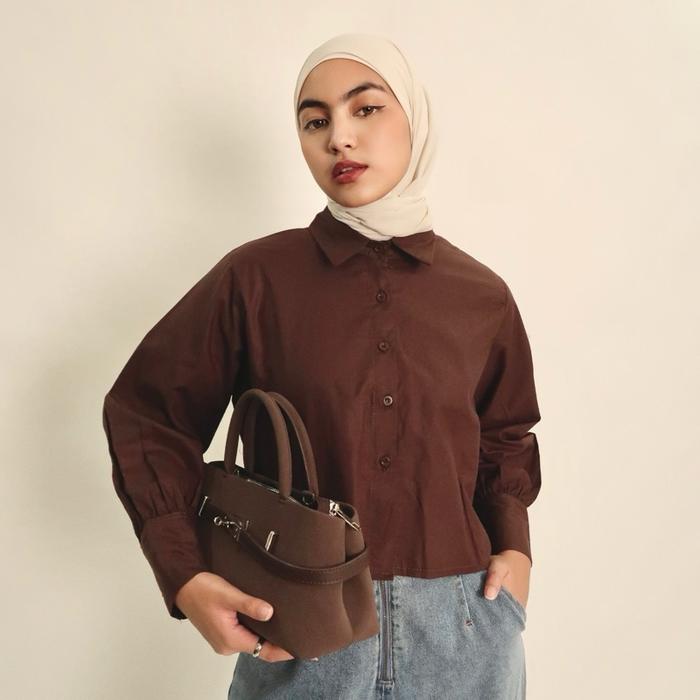 ALAYA KEMEJA CROP KATUN WANITA ATASAN CASUAL KEKINIAN - SKYBLUE
